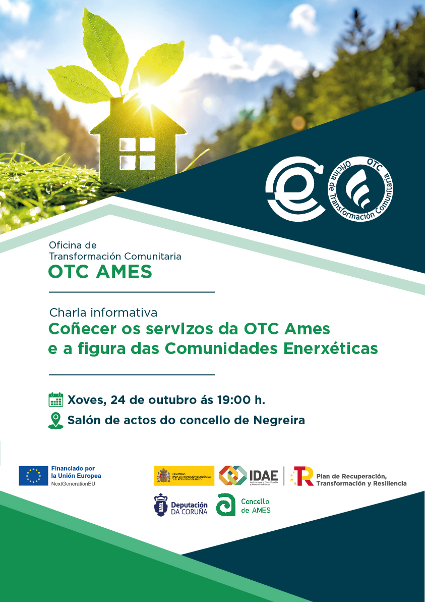 A OTC Ames ofrece unha charla informativa á veciñanza titulada “Coñecer os servizos da OTC Ames e a figura das Comunidades Enerxéticas” en Trasmonte. Día: ...